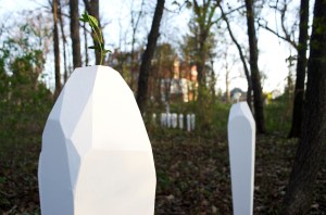 3D prints, laser-cut wood, acrylic paint, and transplanted nature