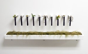 Bronze, scientific glassware, wood, soil, grass, and found weeds