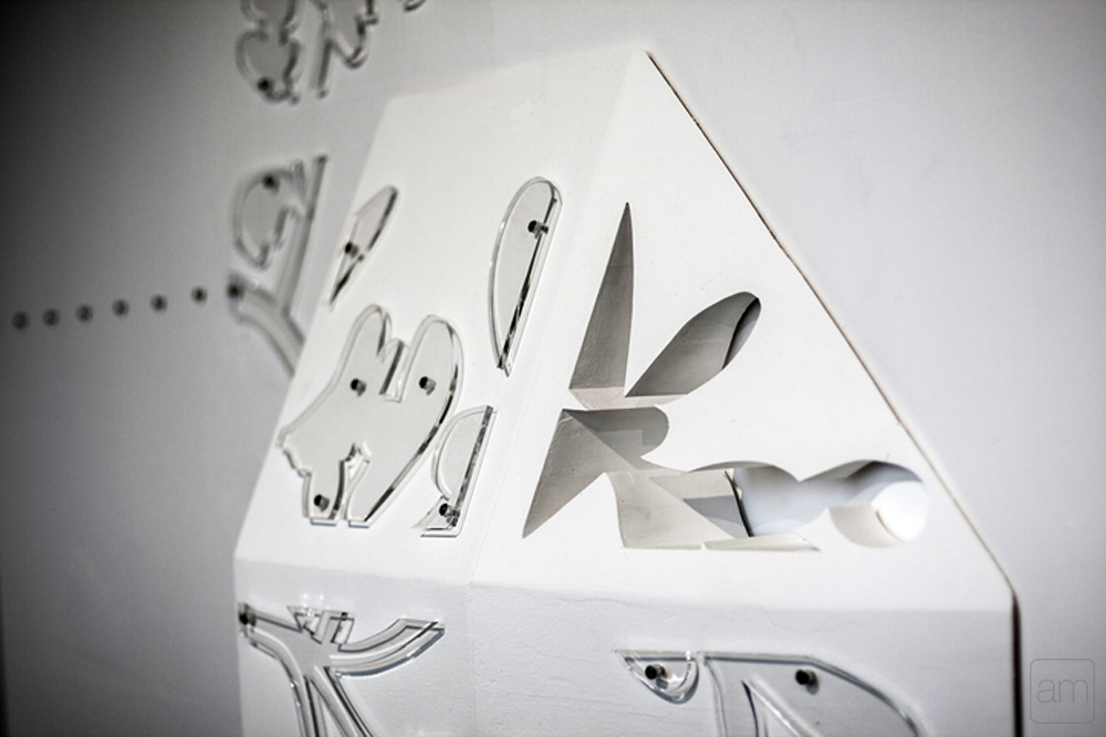 Laser cut acrylic, 3D print, wood, and steel hardware